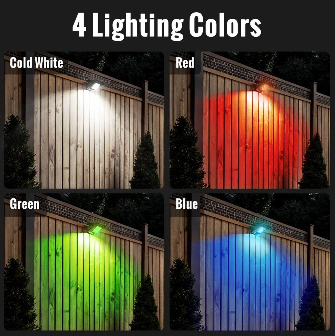 It features 4 lighting colors: cool white, red, green, and blue — perfect for lighting, ambiance, or visibility signaling.